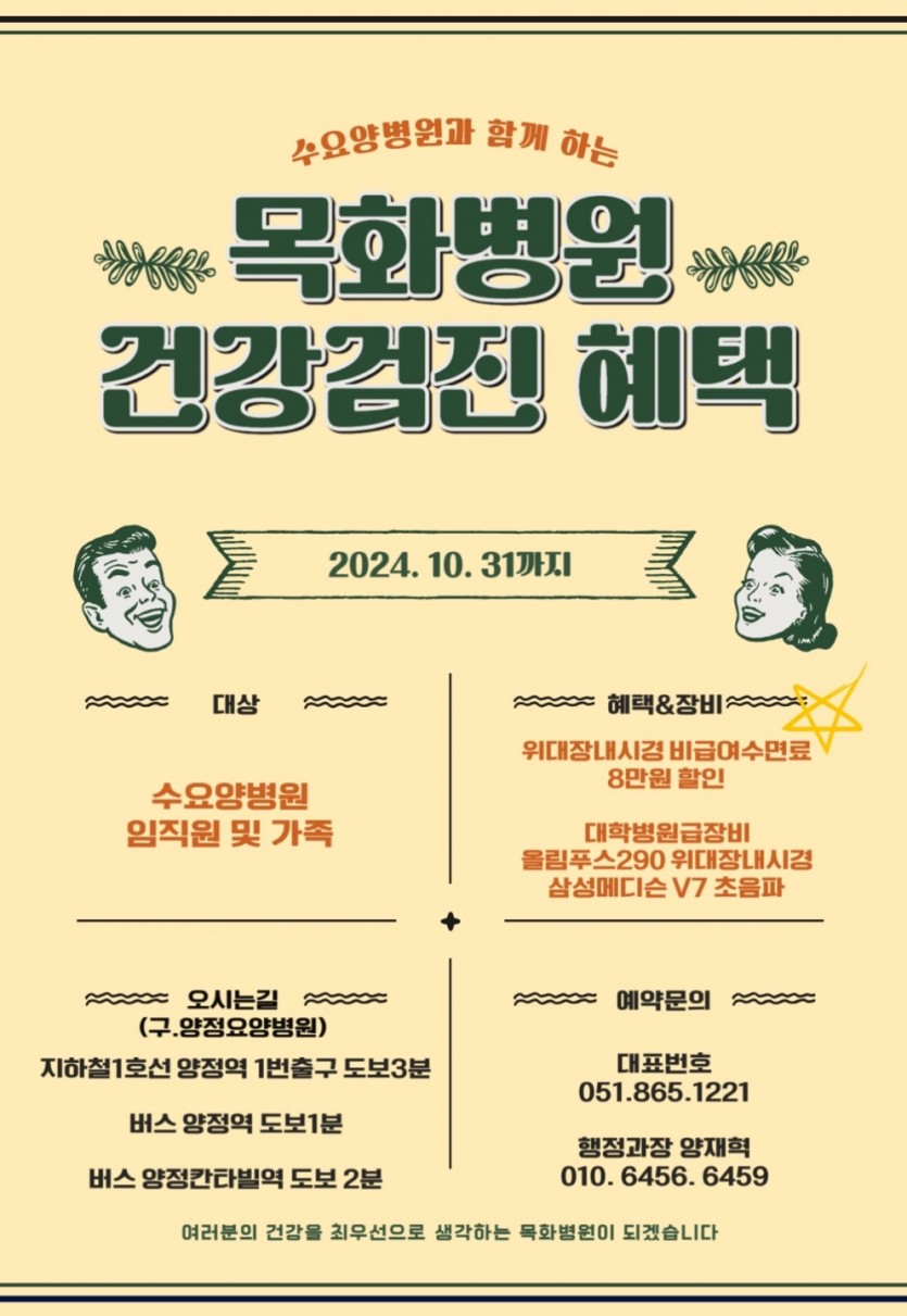 목화병원과 수요양병원 임직원(가족) 건강검진 혜택을 누려 보세요~